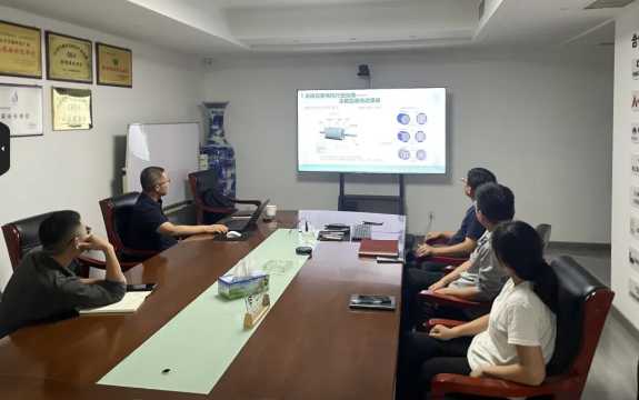 信息详细内容2025年9月22日下午,上海虔友机械设备有限公司技术人员来我院就汽电混动技术和永磁直驱电机技术,与设计部工艺室、电气室技术人员展开深入交流。