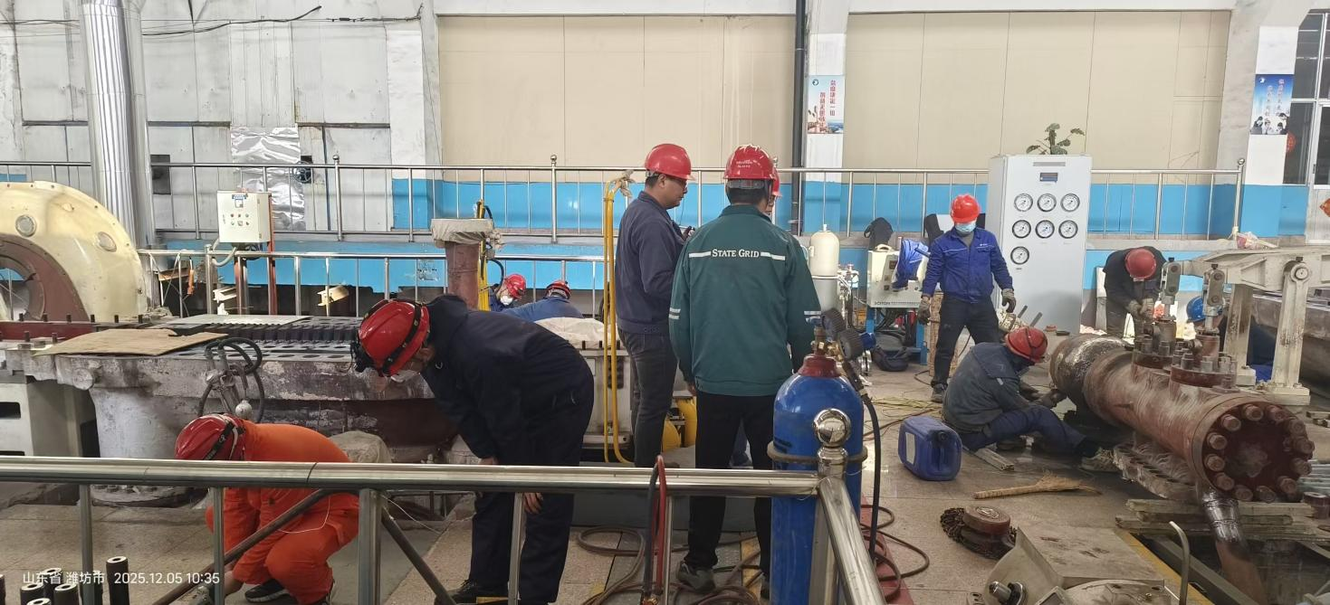 山东银鹰化纤有限公司1号机组于2005年投产。为积极响应国家节能减排的政策要求,2021年底,机组进行供热系统升级改造,将5台35t/h链条炉关停,陆续拆除5台35t/h锅炉及配套的引风机、送风机等辅机以及除尘、脱硫、脱硝等环保设施,新建1台110t/h 高温高压循环流化床锅炉及其辅助设备。2022年开始进行机组技术改造,汽轮机升级更换为12MW高温高压背压式汽轮机,2024年正式投产。1号机组现已累计运行时间满20年,根据国家能源局山东监管办公室相关文件,山东银鹰化纤有限公司委托我院对该机组开展寿命评估及延寿工作。2025年12月1日到12月12日,我院组织检测单位专业检测人员赴项目现场开展机组延寿评估的现场检测工作。后续将对现场检测数据进行整理、分析,开展寿命评估及报告编制工作。