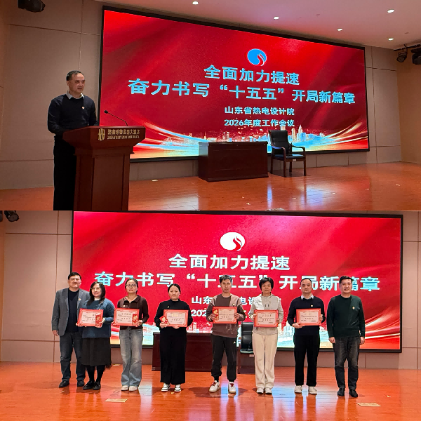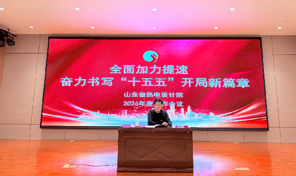 2026年1月16日下午,山东省热电设计院2026年工作会议在蓝海大饭店召开。党支部书记、副院长蒋桂强主持大会,全体员工齐聚一堂,共谋“十五五”开局新篇。